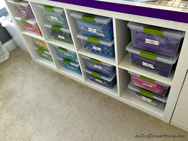 Like a lot of quilters, I used our dining table for my sewing area. We eat together every night, so I quickly tired of moving my things every day. I started storing my supplies and stash in deep Sterilite clip boxes, which made moving and storing easier, but I discovered I needed more and more boxes...and a dedicated craft space.